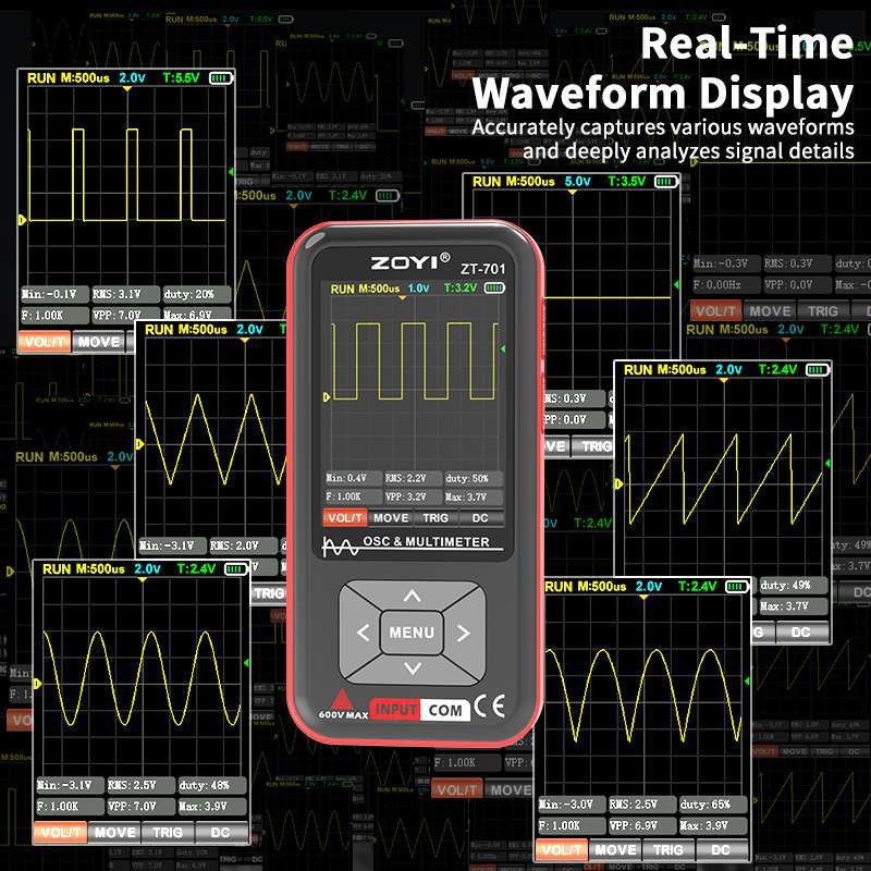 The compact, lightweight design allows easy transport, while the intuitive interface keeps operation simple even during fast-paced diagnostic work. Engineers who frequently switch between waveform viewing and standard meter measurements will appreciate the ZT-701’s all-in-one efficiency. ✔️
