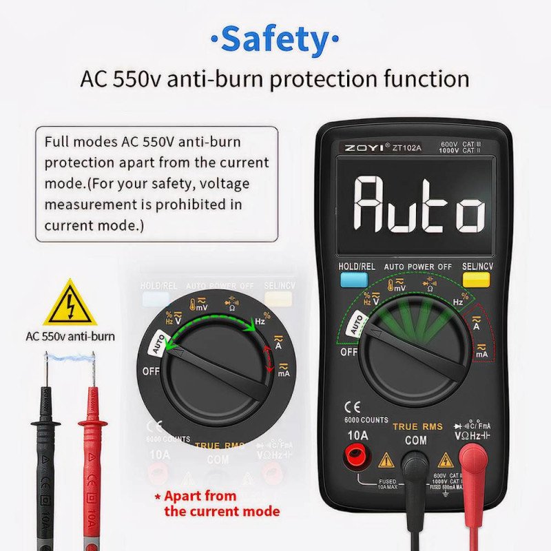 With its clear backlit LCD and smart auto-range functionality, the ZT-102A is ideal for home repairs, workshop projects, appliance troubleshooting and general diagnostics. 📟⚡