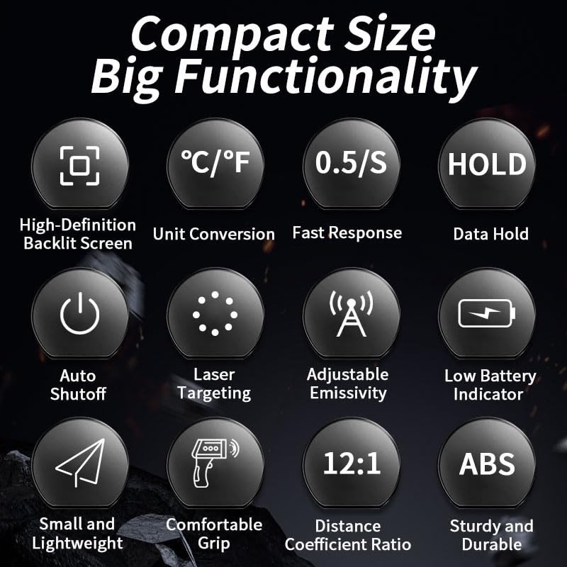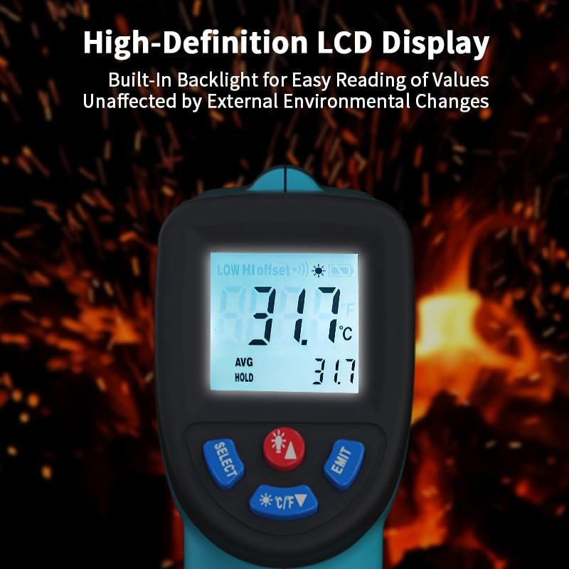 Simply aim, pull the trigger and read the temperature instantly — perfect for checking engines, radiators, bearings, heaters, insulation, ovens and more. 📊
