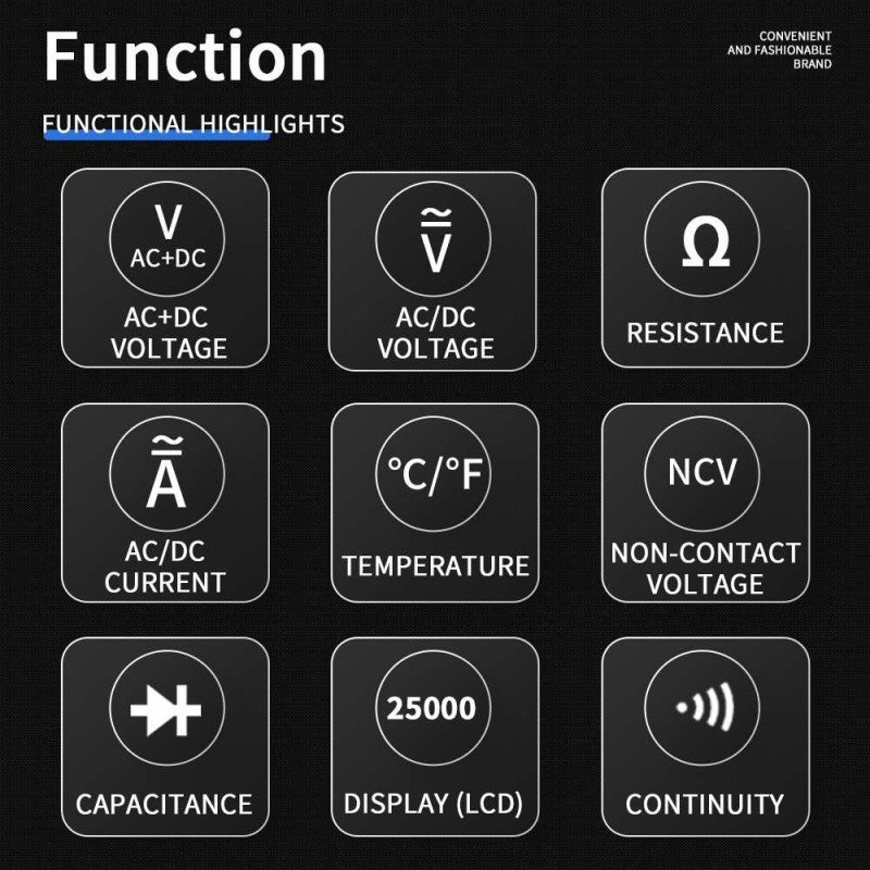 The ZT-225 is a high-precision True-RMS digital multimeter built for technicians, engineers and serious DIY users who require accurate electrical measurements and a large, easy-to-read display. With a remarkable 25,000-count high-resolution screen, the meter provides exceptional detail, making it ideal for fine electronics work, laboratory testing and advanced diagnostics. 📟✨
