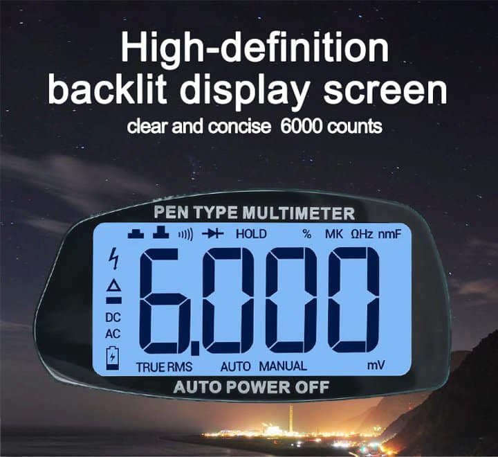 - 6000 Counts Display: Provides high-resolution measurements for enhanced accuracy.