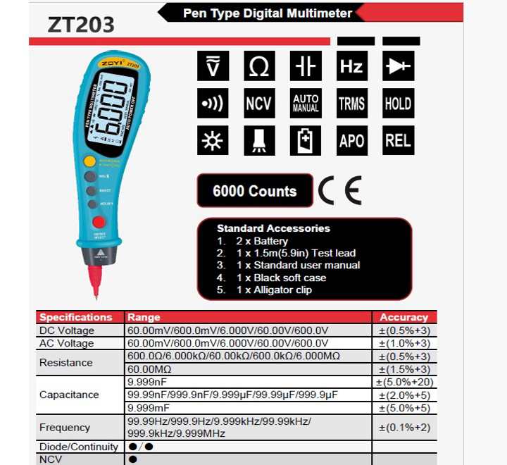 Key Features of the ZOYI ZT-203 Pen Type Digital Multimeter for car